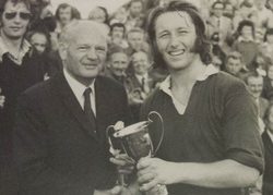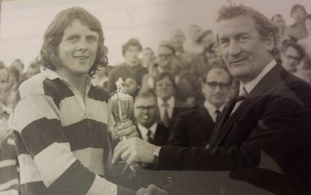Here’s Brynmor Williams receving ‘Man of the Tournament’ trophy from Rex Willis in 1974. Rex Willis’ grandson now plays for Aberaeron U15s