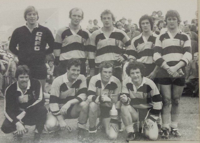 In 1978, Cardiff were the victors. In the team that day was Alan Phillips (front row right), now team manager for Wales. This team almost lost in the quarter finals to Aberaeron – winning by a narrow 11-8 to the local team that included Alun Rees, Glyn Rees, Peter Merritt, Dai Gatehouse (please fill in the blanks). An attempt was made to take a photo of the local heroes that day but the camera broke.